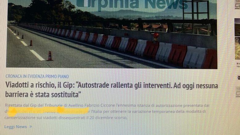 No del Gip di Avellino Fabrizio Ciccone alla richiesta di dissequestro di alcuni viadotti dell’A14 presentata dai direttori del VI e VII Tronco di Autostrade per l’Italia.