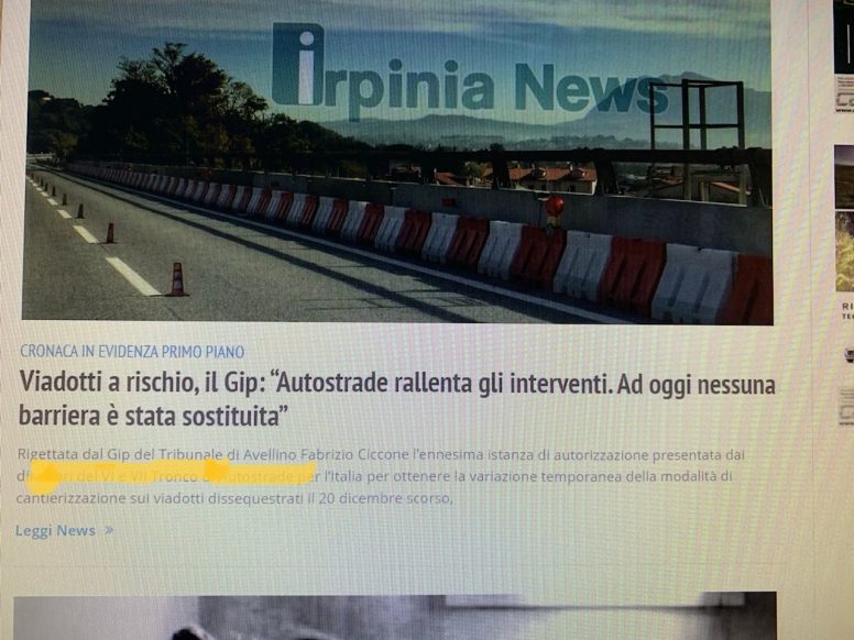 No del Gip di Avellino Fabrizio Ciccone alla richiesta di dissequestro di alcuni viadotti dell’A14 presentata dai direttori del VI e VII Tronco di Autostrade per l’Italia.
