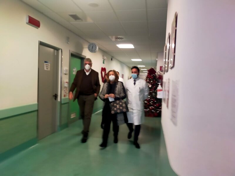 Ad accoglierla il direttore generale della Asl Lanciano Vasto Chieti Thomas Schael e il primario Umberto Benedetto che guida il reparto dal 2 maggio del 2021 ed è professore ordinario di chirurgia cardiaca del Dipartimento di Neuroscienze, Imaging e Scienze Cliniche dell’Università “Gabriele d’Annunzio” di Chieti-Pescara.