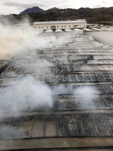 L’incendio, le cui cause sono ancora in corso di accertamento e non è escluso che ci sia stato un cortocircuito, dall’interno di un reparto si è propagato rapidamente interessando buona parte della struttura.