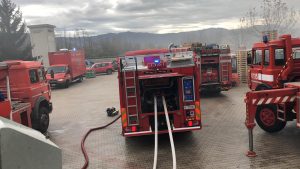 I vigili del fuoco al lavoro dall’alba di oggi, 27 novembre, per domare il grave incendio divampato allo stabilimento Madama Oliva di Carsoli.