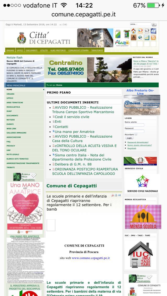 Il 18 settembre, dalle ore 15 alle ora 20, tutte le strade del centro storico e le strade limitrofe nel comune di Cepagatti si terrà la manifestazione ” una mano per Amatrice” , in favore della popolazione del paese distrutto dal sisma del 24 agosto scorso.