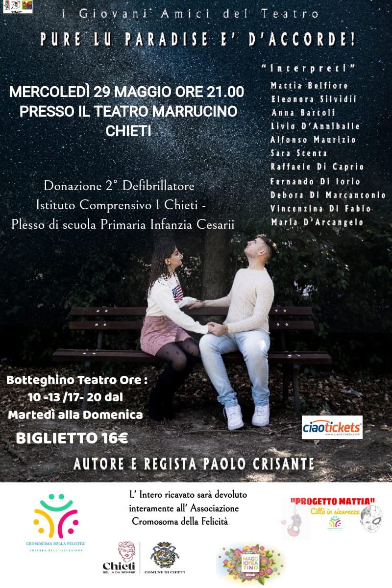 Mercoledì 29 maggio, al Teatro Marrucino di Chieti, si terrà l’evento benefico “Pure lu Paradise è d’accorde!”