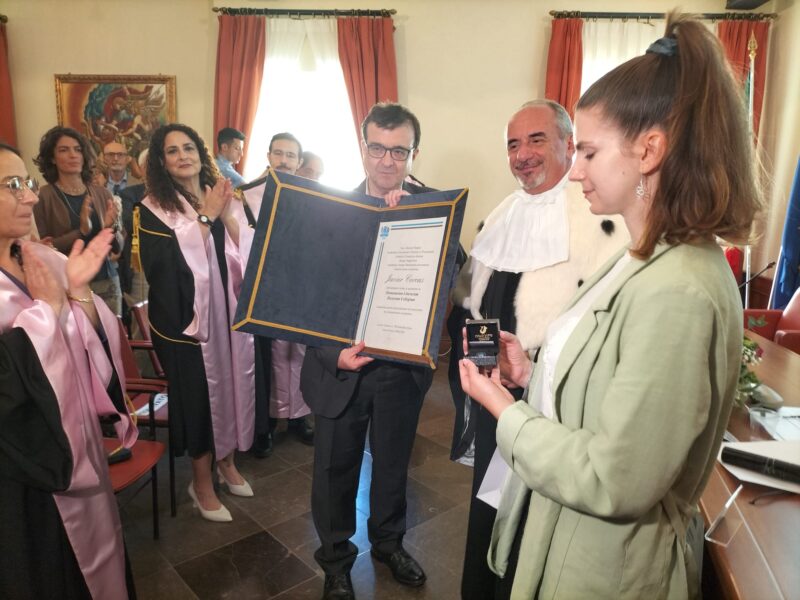 Nato nel 1962 in una Spagna ancora franchista, protagonista di molte sue opere, Javier Cercas ha ricevuto l’onorificenza, che prima di lui era toccata a Liliana Segre, direttamente dalle mani del rettore Liborio Stuppia. Per lo scrittore, saggista, filologo e professore ed editorialista del quotidiano El Paìs, che nel 2020 a Pescara ha ritirato anche il Premio Flaiano, l’onorificenza dell’ateneo dannunziano, conferita al Palazzetto dei Veneziani di Chieti, è stata la prima attribuitagli da un’università italiana.