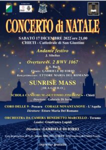 L’assessore regionale alla Cultura e al Turismo Daniele D’Amario afferma : <Quello del 17 Dicembre presso la bellissima Cattedrale di San Giustino di Chieti sarà un appuntamento speciale: per noi tutti il periodo natalizio è sempre un momento magico e forse negli ultimi anni abbiamo imparato ad apprezzare ulteriormente la bellezza dello stare insieme, poiché il distanziamento ci ha insegnato molto.