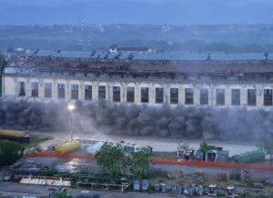 L’esplosione è stata avvertita in diverse zone della città e in alcuni territori limitrofi come Manoppello Scalo. Come programmato, la struttura principale dell’ex Zuccherificio di Chieti Scalo è stata fatta brillare all’alba di stamane, dopo che l’intera area attorno a via Piaggio è stata temporaneamente isolata e presidiata dalle Forze dell’Ordine. L’edificio abbattuto era il più grande tra quelli che costituiscono l’impianto industriale dismesso, oggi di proprietà del veicolo Alitec controllato da Toto Costruzioni Generali, con una superficie al suolo pari a circa 3.900 mq, lunghezza di 104 m, altezza massima di circa 25 m e volume di 65.000 mc.