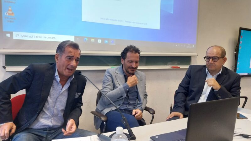 Il direttore di Rete8 Carmine Perantuono e il giornalista Massimo Profeta a confronto con gli studenti dell’Università d’Annunzio