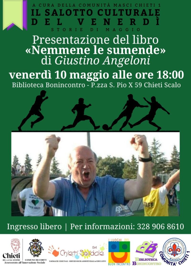 Giustino Angeloni, già Presidente della Chieti Calcio ed oggi Presidente della Deputazione Teatrale Teatro Marrucino, parlerà di un suo libro scritto diversi anni or sono e che fece tanto successo: “Nemmene le sumende”.