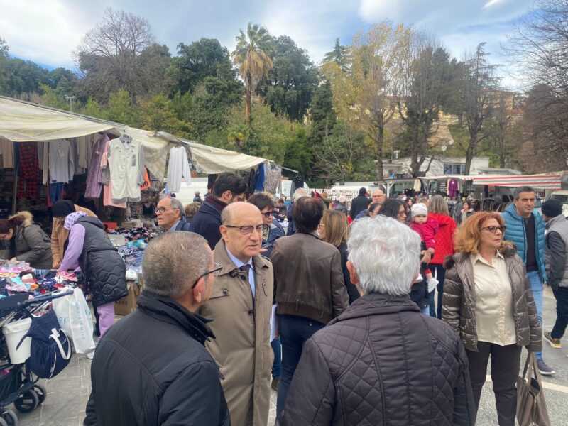 Primo giorno di mercato alla Villa comunale di Chieti, dopo lo spostamento da Corso Marrucino deciso dall’Amministrazione comunale
