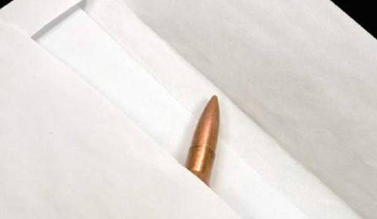 Indagini della Digos di Chieti su una busta, arrivata in Prefettura, contenente un proiettile calibro 9 e una lettera con minacce di morte a sei politici e dirigenti della Asl. L’assessore regionale Paolucci al Tg8 spiega:” è la terza missiva che ricevo. Non ho paura perchè si tratta di uno sconsiderato”.