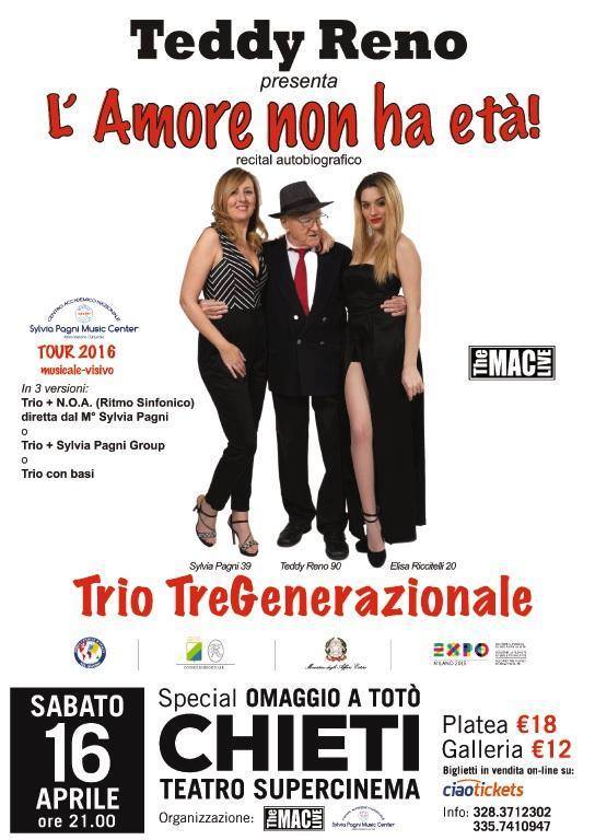 Chieti: Spettacolo di Teddy Reno rinviato al prossimo 8 maggio a causa di un’improvvisa indisposizione della musicista Silvia Pagni costretta a ricorrere alle cure del Pronto Soccorso.