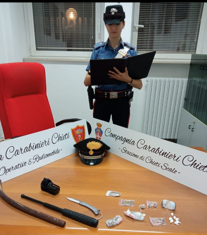 L’operazione dei militari della Compagnia Carabinieri di Chieti, che hanno operato con una unità cinofila, ieri sera 20 maggio, durante un servizio di controllo del territorio, ha portato alla denuncia di alcuni giovani che sono stati trovati in possesso di hashish e cocaina, per un peso complessivo di oltre 30 grammi, e di coltelli, manganelli e bastoni che sono stati sequestrati.