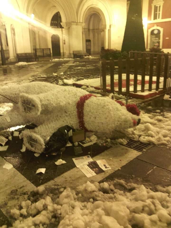 un atto imperdonabile da parte di ignoti questa notte in Piazza Vico, nel centro storico di Chieti, dove è stato buttato a terra e divelto in più punti un orso luminoso facente parte delle installazioni di “Luci d’artista” che dopo Pescara è stato proposto, quest’anno, anche nel capoluogo teatino. A denunciarlo, con tanto di reportage fotografico, sui social, il sindaco di Chieti Umberto Di Primio: