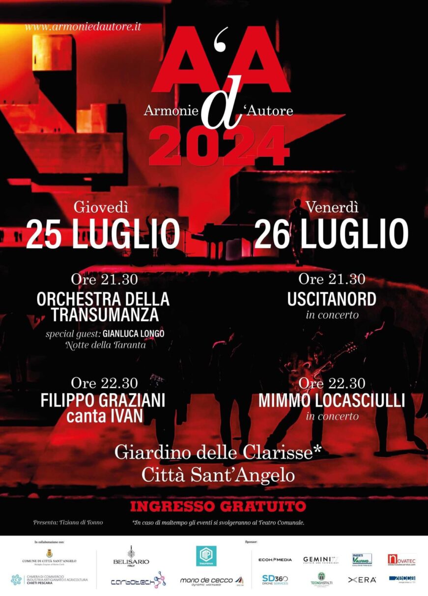 Questa sera alle 21.30, al Giardino delle Clarisse di Città Sant’Angelo, si terrà la prima di due serate della sesta edizione di ‘Armonie d’Autore’