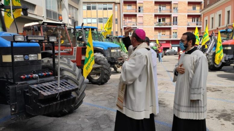Teramo, grande partecipazione nella Giornata del Ringraziamento promossa da Coldiretti. La benedizione dei trattori da parte del vescovo Leuzzi e l’offertorio con le produzioni agricole teramane per un messaggio di solidarietà, impegno e speranza che arriva dalla terra.