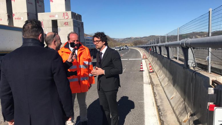 A Colledara il ministro Danilo Toninelli assiste, in prima persona, alle prove di carico sui viadotti della A24, in corso da alcuni giorni, per verificare i parametri di sicurezza antisismica.