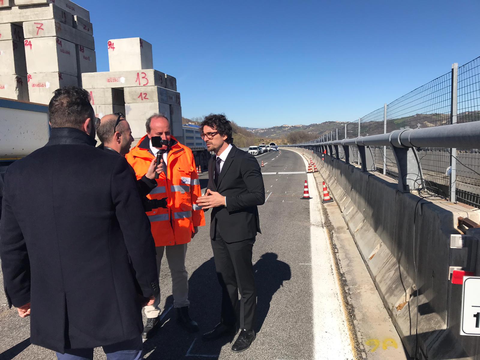 A Colledara il ministro Danilo Toninelli assiste, in prima persona, alle prove di carico sui viadotti della A24, in corso da alcuni giorni, per verificare i parametri di sicurezza antisismica.