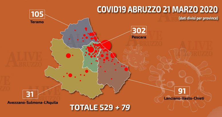 La mappa dei casi positivi registrati nella nostra Regione dall’inizio dell’emergenza, comune per comune aggiornata al 21 marzo.