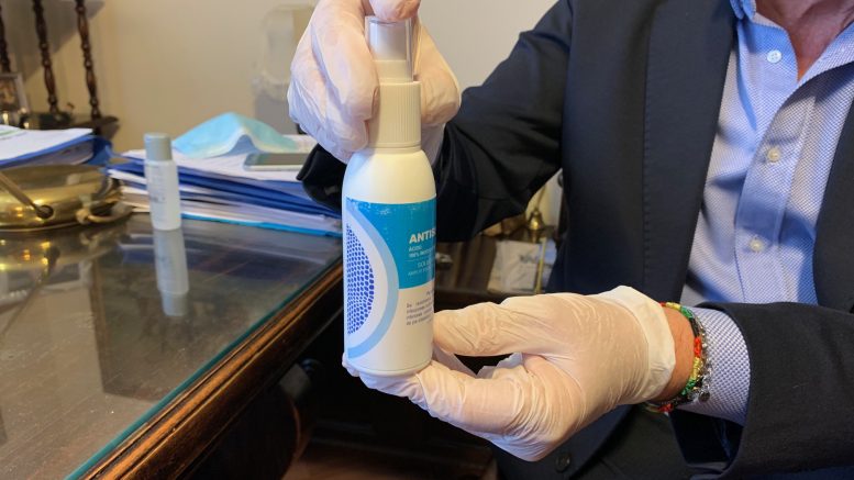 “La particolarità di questo prodotto sta nella sua bivalenza – spiega Berghella mentre utilizza lo spray sulla sua bocca, sul naso e negli occhi – ovvero non è in alcun modo nocivo per il corpo umano. Si tratta di certificare scientificamente la sua efficacia nel tempo che in teoria non dovrebbe essere inferiore alle 5 ore e non superiore alle 8. Questo significa che basterebbe uno spray per dotarci di una sorta di “scudo” che ci tiene a riparo da virus e batteri e tornare così alla vita di tutti i giorni.”