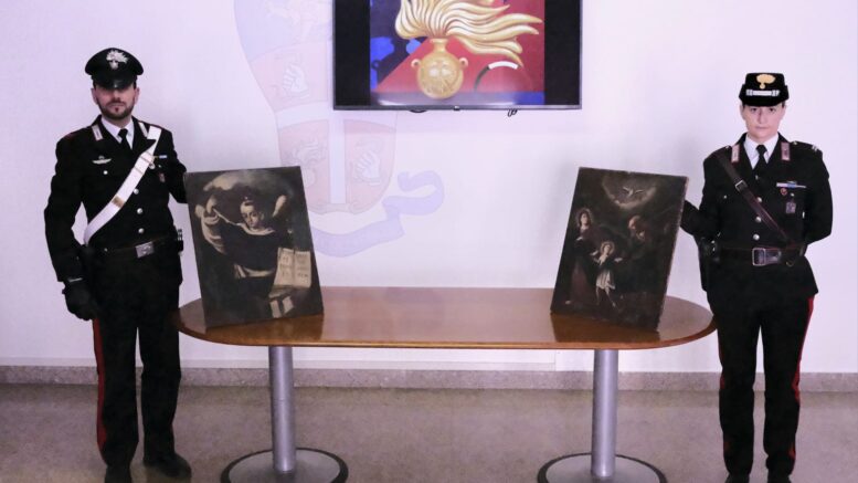 Le opere, ad olio su tela e di autore ignoto, sarebbero risalenti a un periodo tra il XVI e XVII secolo, delle dimensioni di cm 60×50, privi di cornice, aventi ad oggetto rappresentazioni religiose, in particolare in uno è dipinto “San Vincenzo Ferreri” mentre l’altro rappresenta “la fuga in Egitto”. I due dipinti sono stati sottoposti a sequestro.