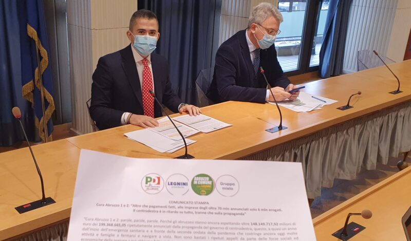 “Il centrodestra è in ritardo su tutto, tranne che sulla propaganda” secondo i consiglieri dei gruppi regionali del Pd, Abruzzo, Legnini Presidente e Gruppo Misto che oggi hanno detto alla stampa che “dei pagamenti fatti alle imprese con le leggi Cura 1 e 2 degli oltre 70 milioni annunciati ne sono stati erogati soltanto sei”.