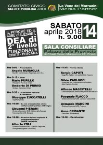 Nella sala consiliare della Provincia di Chieti si sono incontrati esperti con l’assessore regionale alla programmazione sanitaria Silvio Paolucci, i manager delle Asl di Pescara e Chieti Armando Mancini e Pasquale Flacco , dirigenti ed amministratori locali nel corso del convegno organizzato dal Comitato di Salute pubblica di Chieti, promotore dell’evento odierno. Il Dea di II livello Chieti Pescara è in dirittura d’arrivo ha ribadito l’assessore regionale Paolucci mentre il coordinatore del Comitato Walter Palumbo ha spiegato che si sta lavorando per superare i campanilismi e migliorare la qualità delle prestazioni sanitarie. A spiegare come poter ottimizzare le risorse e realizzare un Dea sono stati Alberto Zoli, direttore generale dell’Agenzia Regionale Emergenza Urgenza della Lombardia, Giuseppe Pieroni, direttore operativo dell’Istituto delle Scienze Neurologiche dell’Ausl di Bologna e Giuseppe Zuccatelli, esperto Agenas.