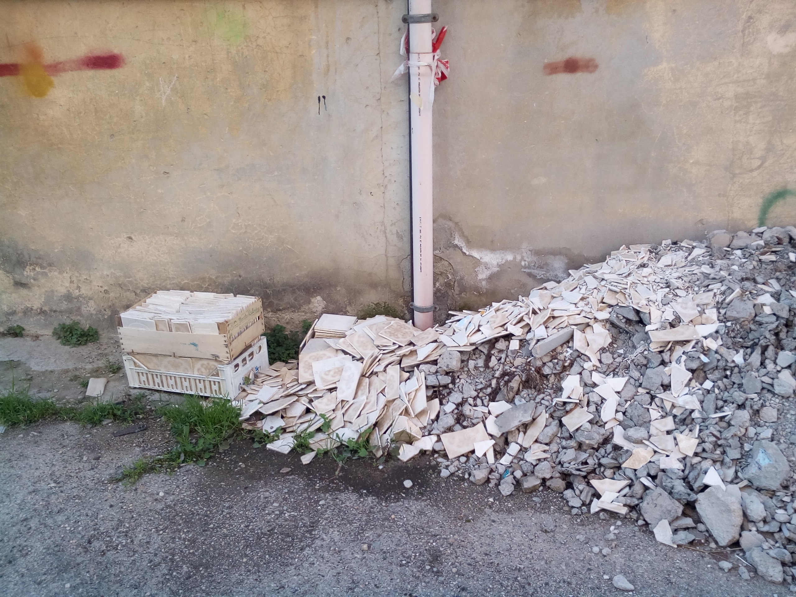 “I nostri operai mi hanno riferito che solo una minima parte riguarda gli scarti di una spicconatura che nei giorni scorsi ha effettuato una nostra ditta, mentre la gran parte dell’accumulo, dove é per altro cresciuta anche l’erba, riguarda calcinacci di altri lavori evidentemente realizzati senza autorizzazione da parte di qualche residente all’interno dell’appartamento.”