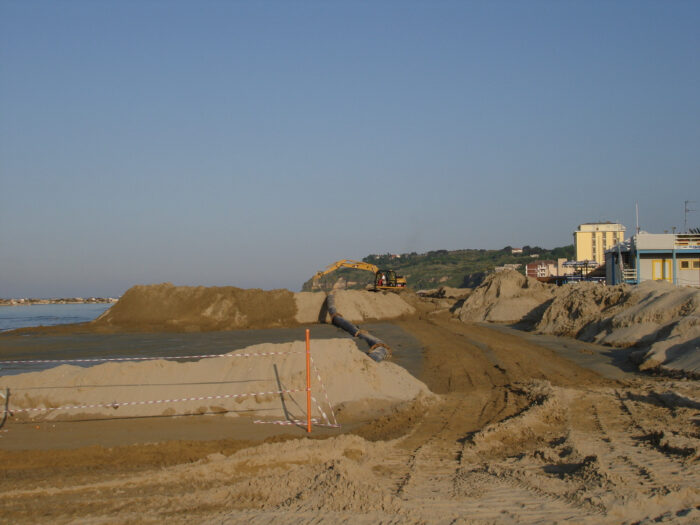 -la gran parte, 486.550 mc, verrà destinata a ripascimento del tratto costiero Lido Riccio – Stazione di Tollo – Foce Foro. Di questi, 143.550 mc saranno usati per un ripascimento a terra, che non era previsto nel vecchio progetto, e 343.000 mc per un ripascimento con scarico nel tratto di mare immediatamente antistante il tratto di litorale;