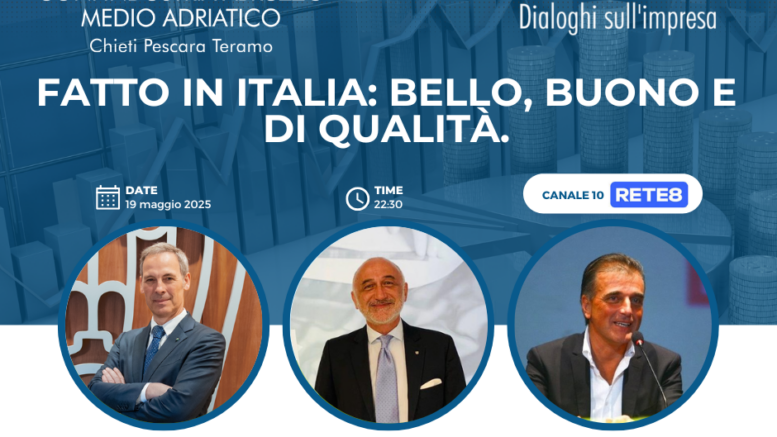 Fatto in Italia: bello, buono e di qualità. Questo il titolo della puntata di “EconoMIA, dialoghi sull’impresa”, format tv di Confindustria Abruzzo Medio Adriatico e Rete8 che andrà in onda lunedì 19 maggio 2025 alle ore 22:30