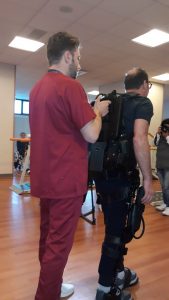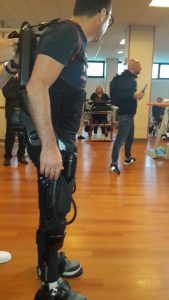 Ekso è un dispositivo in acciaio e carbonio che si attiva per mezzo di quattro motori elettromeccanici alimentati da due batterie. Dei sensori invece captano e riconoscono l’assetto posturale del paziente fornendo informazioni (calcolo e modulazione della forza da impegnare, ampiezza e durata delle attività motorie) che un computer elabora e traduce in tempo reale al fine di assistere il paziente nella stazione eretta, nel bilanciamento e nella deambulazione passiva, attiva o attiva assistita. Il suo utilizzo consente di re-impostare movimenti degli arti inferiori alterati o impossibili da eseguire consentendo una verticalizzazione precoce e sicura così come una ri-attivazione muscolare e articolare per mezzo di esercizi ripetitivi finalizzati alla riprogrammazione del ciclo del passo. Ma non solo. Consente di migliorare significativamente i tempi di ripresa e la capacità di camminare anche di pazienti colpiti da ictus in fase subacuta, non deambulanti. La notizia, recentissima, è emersa da uno studio coordinato proprio dall’IRCCS San Raffaele di Roma, che ha coinvolto diversi centri di riabilitazione italiani, pubblicato lo scorso febbraio dalla prestigiosa rivista scientifica European Journal of Physical and Rehabilitation Medicine.