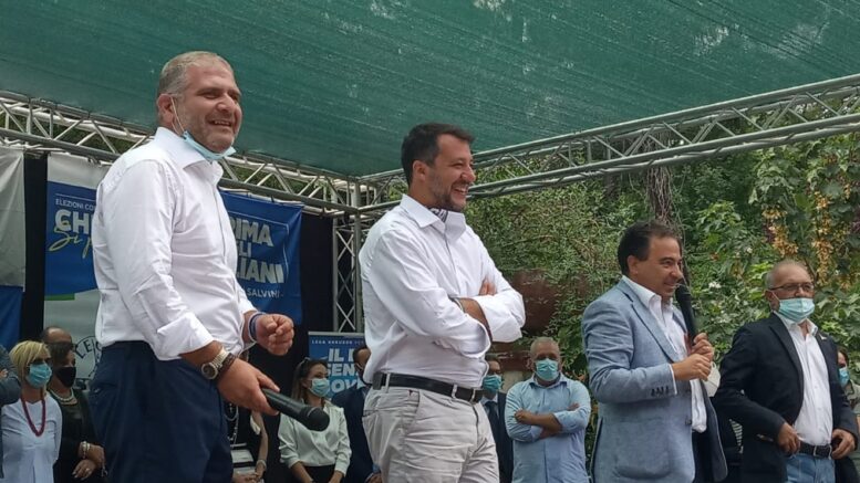 Salvini sul candidato sindaco Di Stefano ha detto ”Ho scelto Fabrizio Di Stefano perché penso che abbia l’esperienza necessaria per dare dieci anni di buona amministrazione a questa comunità che ha sofferto tanto e quindi abbiamo non solo un candidato ma una squadra all’altezza, perché vince la squadra. Da noi vedo tante facce sorridenti entrando in Chieti, dove governa la Lega la differenza si vede. Io poi sono un perfezionista quindi si può sempre fare di meglio però i soldi veri alle imprese e alle famiglie Regione Abruzzo li ha dati, spesso anche più di quelli che aveva promesso e non dato il governo”.