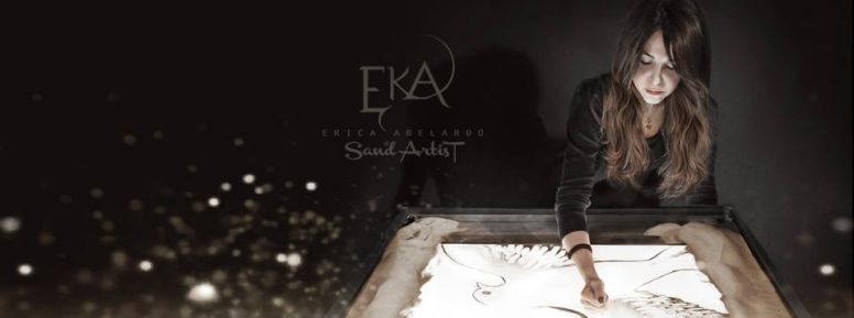 Una passione per le arti grafiche visive fin da piccola, poi nel 2011 la folgorazione, una tavola luminosa del padre ed un pugno di sabbia. E’ stato del tutto naturale per Erica Abelardo tratteggiare figure su quella tavola, servendosi soltanto della sabbia raccolta sulla spiaggia di Pescara. Aveva già sentito parlare di questa nuova forma d’arte visiva inventata da un’artista israeliana, lei che a 13 anni già regalava meraviglia esibendosi in numerosi spettacoli con la giocoleria infuocata, ha trovato la sua reale dimensione realizzando disegni sempre più sofisticati e suggestivi fino a diventare una delle sand artist più ricercate in Italia e all’estero: