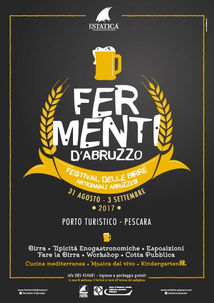 La rassegna Estatica 2017 , al porto turistico di Pescara, affida la sua conclusione al festival delle birre artigianali abruzzesi “Fermenti d’Abruzzo” in programma da giovedì 31 agosto a domenica 3 settembre. Una manifestazione organizzata dal Marina di Pescara e con il patrocinio della Camera di Commercio. L’ingresso è gratuito.
