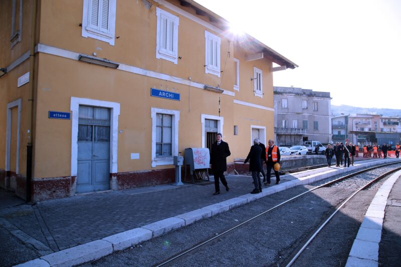 Nell’epoca della sostenibilità, – ha proseguito – è opportuno riaprire strade ferrate, potenziarle, ammodernarle tecnologicamente, elettrificarle, fare i deviatoi e gli scambi telecomandati per superare anche il problema della manualità e della farraginosità di alcuni sistemi. Qui, alla stazione di Archi, stiamo rinnovando e potenziando tutto il sistema degli scambi. Da qui, poi, la linea prosegue verso Villa Santa Maria.