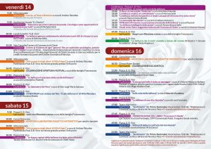 Ricco il programma della tre giorni di festival: conferenze, spettacoli, concerti, workshop, stand, laboratori, attività di piazza e momenti spirituali per adulti e per bambini e ragazzi, si terranno in piazza G. B. Vico, alla Villa Comunale, alla Camera di commercio, in Corso Marrucino, al Supercinema, al Convitto Vico, all’auditorium della scuola Chiarini per dare vita al “Cammino della Bellezza. Tutte le attività sono libere e gratuite.