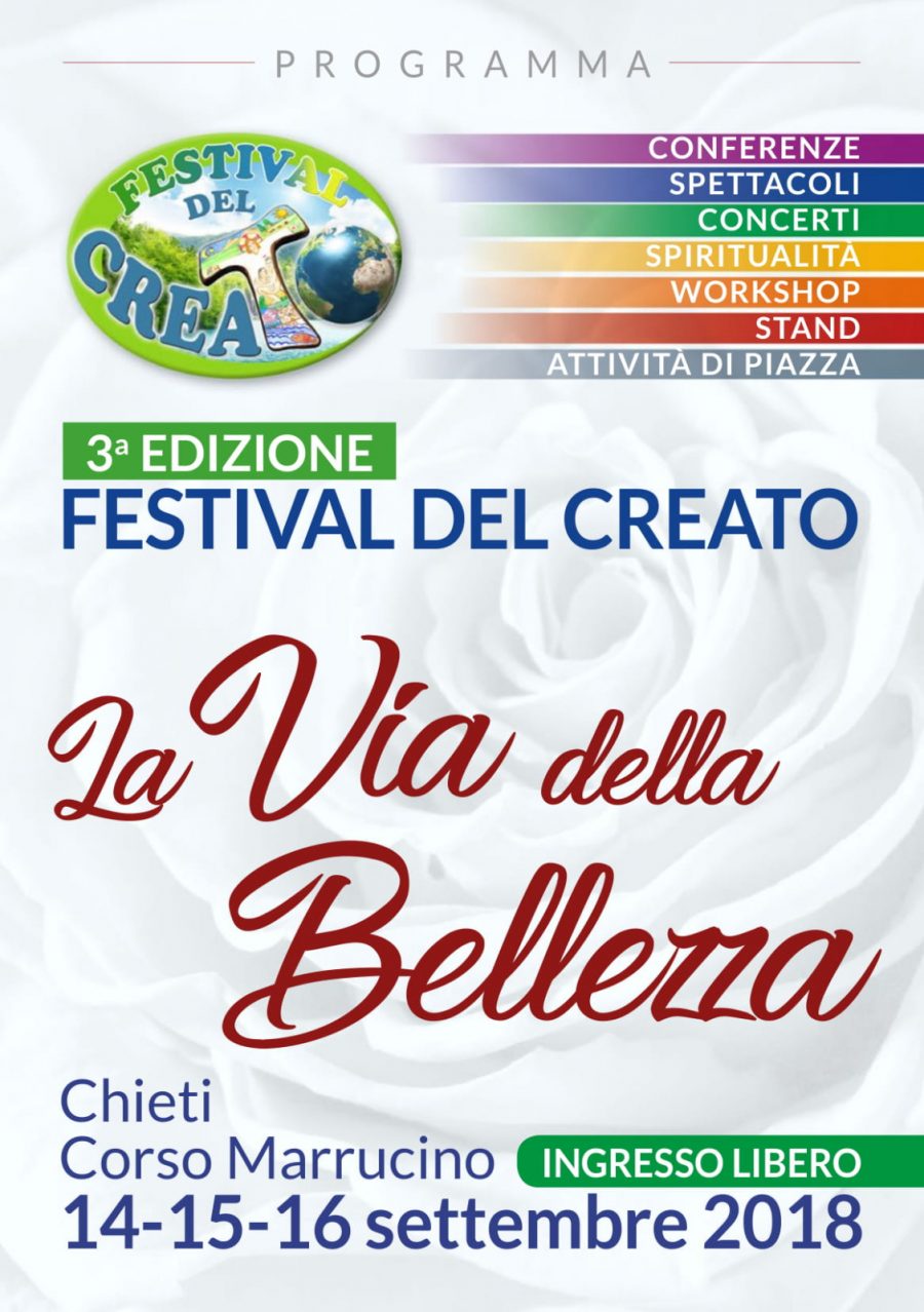 A Chieti prosegue il “Festival del Creato” organizzato dall’Ordine francescano secolare d’Abruzzo coadiuvato dai Frati francescani delle obbedienze Minori, Cappuccini e Minori conventuali, dalla Gioventù francescana, dalla Consulta dei laici di Chieti con il supporto dell’Arcidiocesi di Chieti-Vasto e del Comune di Chieti.