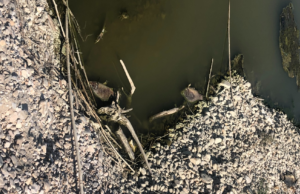 La foce del fiume Salinello è diventata uno stagno putrescente: pesci e granchi morti, fango, mucillagine, puzzo nauseabondo.