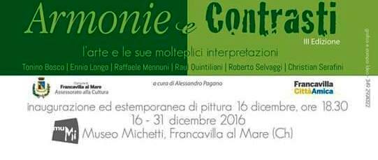 Francavilla al Mare: “Armonie e Contrasti” al Museo Michetti, una collettiva curata da Alessandro Pagano in mostra da domani fino al 31 dicembre.