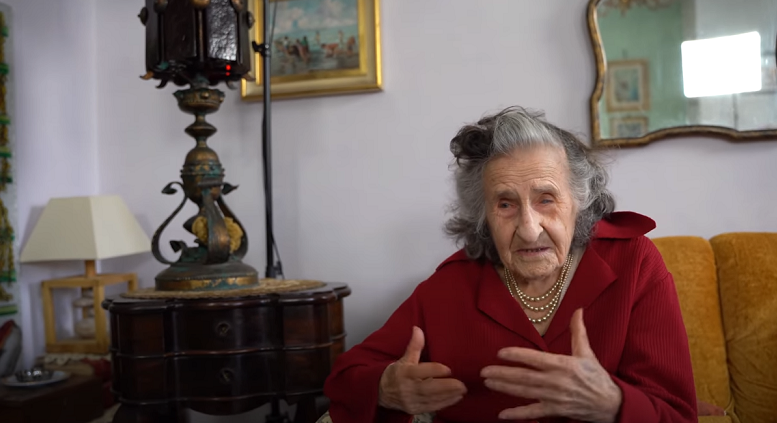 Nel video racconta altresì delle difficoltà di poter trovare cibo durante la guerra (arrivando perfino a mangiare bucce di patate ed altri residui alimentari, e ricorda, in particolare, di quando suo padre, colonnello medico oculista, durante la prima guerra mondiale, curò tra i feriti Gabriele D’Annunzio ferito ad un occhio.