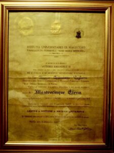 Il padre fu colonnello medico oculista, e curò Gabriele D’Annunzio che era stato ferito a un occhio e il Vate, in segno di gratitudine, gli scrisse una dedica ( nella foto in basso), che viene tutt’ora conservata in originale a Napoli dal fratello magistrato di Elena .