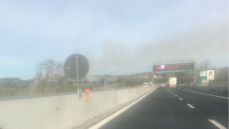 Un denso fumo ha invaso la carreggiata, questa mattina, sull’autostrada A/14 nei pressi del casello di Francavilla al Mare.