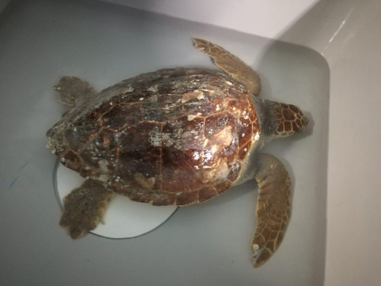 A distanza di pochi giorni, una nuova tartaruga, rimasta intrappolata nella rete, è stata salvata da un motopeschereccio a largo di Francavilla al Mare.