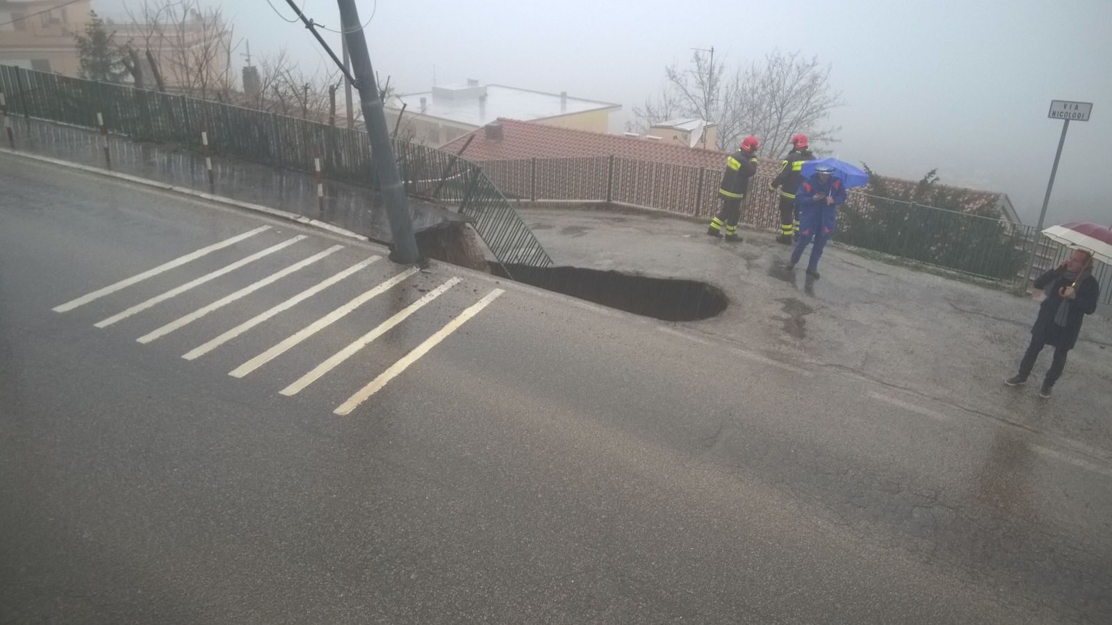 Frane e dissesto idrogeologico a Chieti, un problema annoso ma che, dopo l’eccezionale nevicata dello scorso gennaio, è tornato prepotentemente alla ribalta delle cronache. Questa mattina è sprofondato un tratto di marciapiede su via Silvino Olivieri, la strada sottostante largo Cavallerizza, a pochi metri dal palazzo di giustizia e dal centro della città. All’improvviso si è aperta una voragine proprio a pochi centimetri da un palo per l’illuminazione pubblica al quale sono collegati anche i fili della filovia. Sul posto sono arrivati i vigili del fuoco. Rallentamenti alla circolazione viaria e traffico paralizzato lungo l’arteria viaria.