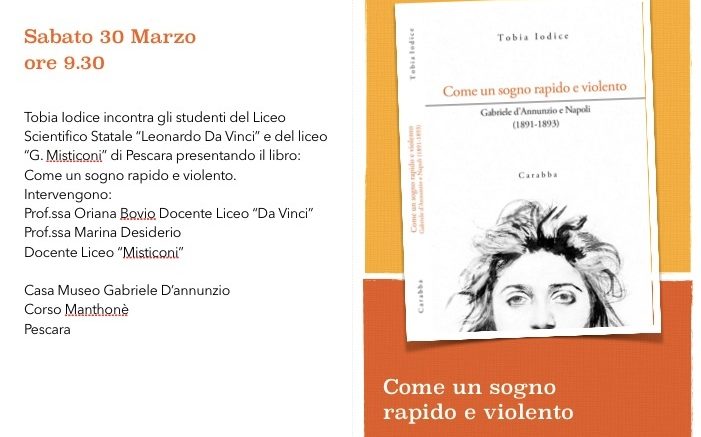 Gli studenti dei licei “Leonardo da Vinci” e “Bellisario-Misticoni” di Pescara , il 30 marzo, incontreranno il dannunzista Tobia Iodice per ripercorrere i due anni trascorsi da Gabriele d’Annunzio all’ombra del Vesuvio.