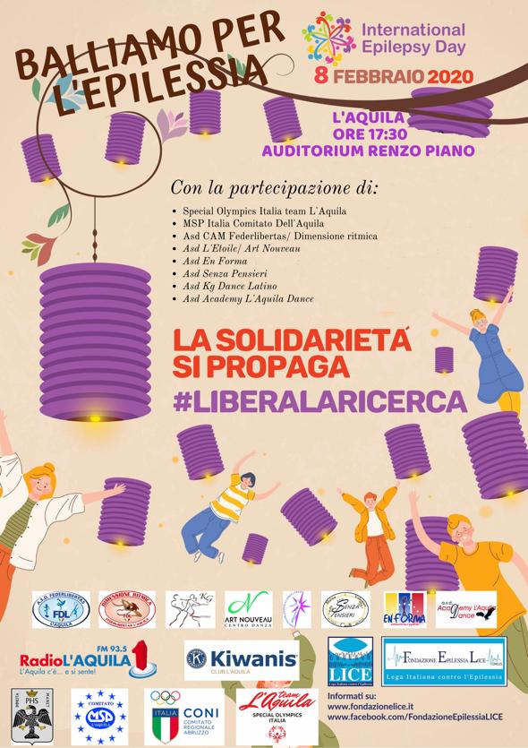 Oggi pomeriggio a partire dalle 17.30 presso l’Auditorium Renzo Piano a L’Aquila una serie di eventi di spettacolo ed intrattenimento dal titolo “Balliamo per l’epilessia”, organizzato dalla Lega Italiana Contro le Epilessie (L.I.C.E.), in collaborazione con il Kivanis. Claim di questa edizione “Libera la ricerca”: