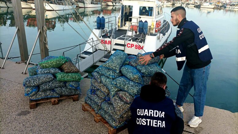 La Guardia costiera di Giulianova ha sequestrato oltre 1.150 kg di molluschi ed elevato sanzioni pari a 13.393 euro nei confronti di pescherecci sorpresi in zone non consentite