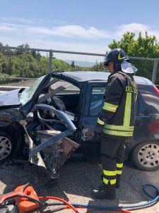 Una squadra di Vigili del Fuoco del Distaccamento di Roseto degli Abruzzi è , infatti, intervenuta sulla SP262 Via per Mosciano Sant’Angelo, nel comune di Giulianova, dove si è verificato un incidente stradale. Nello scontro sono rimaste coinvolte due autovetture: una Fiat Punto e una Fiat Panda. Un ragazzo di ventuno anni, che si trovava alla guida della Panda, non ha riportato particolari conseguenze. Nella Fiat Punto erano ,invece, rimasti bloccati un uomo di quarantacinque anni e una donna di quarantina anni, poichè le lamiere contorte non permettevano di aprire la portiera anteriore sinistra e mentre l’altra portiera era troppo vicina al guardrail. I vigili del fuoco sono riusciti ad estrarre la coppia insieme al personale sanitario del 118 di Giulianova che è accorso sul posto con due ambulanze medicalizzate. Per rimuovere la portiera anteriore sinistra è stato necessario utilizzare una cesoia ed un divaricatore idraulici. Una bambina di 10 anni, figlia della coppia, era seduta sul sedile posteriore della Punto ed è riuscita ad abbandonare autonomamente l’auto, senza riportare danni fisici. I genitori hanno riportato ferite e contusioni e sono stati trasportati all’ospedale di Giulianova. Sul posto è intervenuta anche la Polizia Municipale di Giulianova.