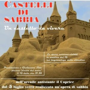 Da anni è un appuntamento fisso e molto atteso l’iniziativa “Un castello da vivere” e questa estate è iniziata il 5 luglio e culminerà domani, 10 luglio, nella realizzazione di castelli di sabbia sull’arenile antistante lo stabilimento “Caprice”.
