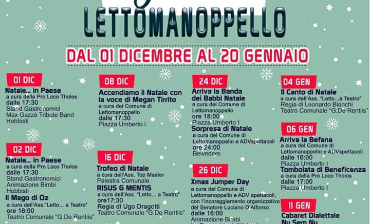 Ricco cartellone degli eventi natalizi del Comune di Lettomanoppello, organizzato in collaborazione fra il Comune e il mondo dell’associazionismo locale.