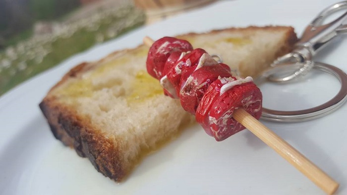 Un portachiavi… gustoso che diventa un cult per gli Abruzzesi e che rappresenta un arrosticino in miniatura. A guardarlo sembra vero, se non fosse per le piccole dimensioni e per il ciondolo rotondo pronto a ospitare le chiavi di chi lo voglia come personalissimo oggetto. Una creazione di Katy Amore e Fantasia che non è sfuggita quei bontemponi de “L’abruzzese fuori sede“, i quali hanno condiviso l’immagine del particolarissimo portachiavi sulla loro seguitissima Pagina Facebook suscitando tanta curiosità e simpatia tra gli utenti della rete. Ancora una volta, l’arrosticino torna a far parlare di sé e rappresenta la… chiave, è il caso di dirlo, della “abruzzesità”. Immancabile, come si vede nella foto, l’accostamento al “pane ond'” pane con l’olio (vero questo ultimo) mentre il portachiavi diverte e conquista la rete, forse vegetariani e vegani escluso.